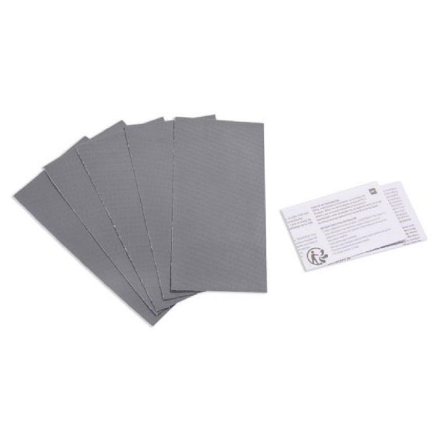 Il kit è composto da cinque toppe, grigie all'esterno e mosaico all'interno misurano 15 X 7,5 cm.