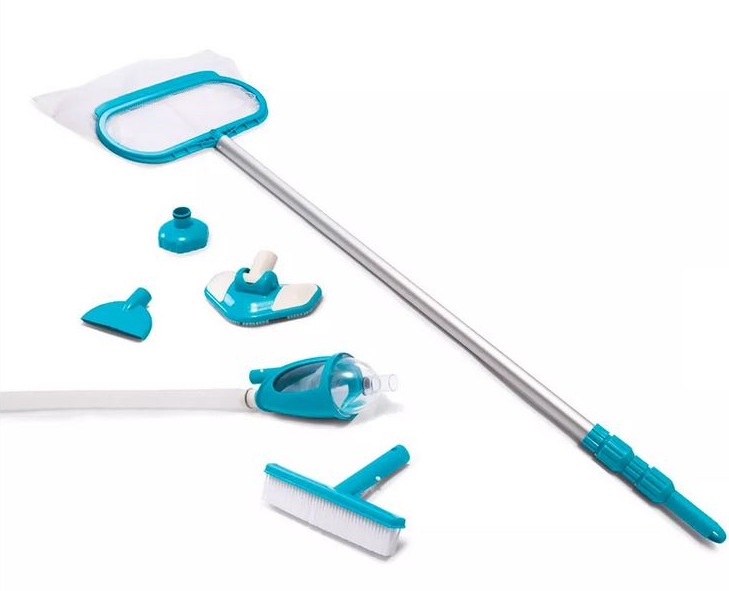 Il Kit di pulizia Deluxe, particolarmente consigliato per piscine Intex Fuoriterra a partire da 549 cm di diametro in su.