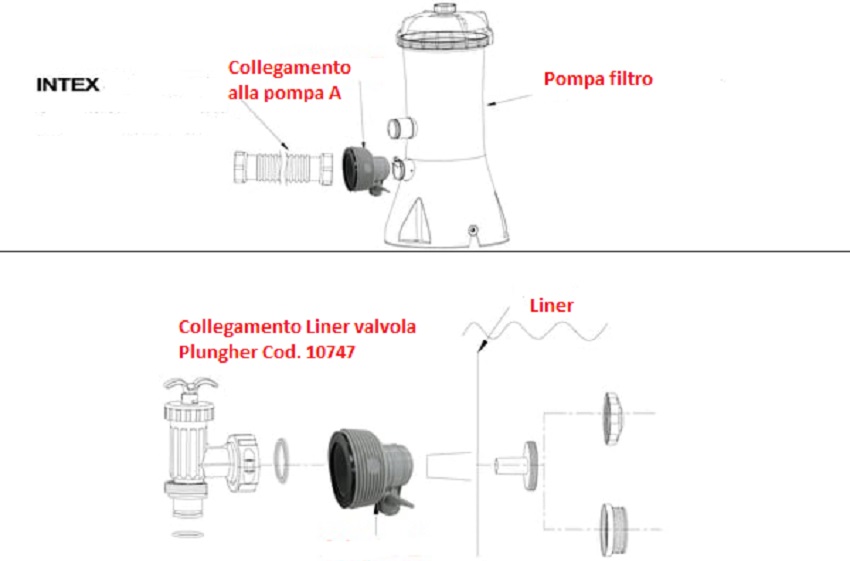 Adattatore Tipo B per collegamento da un tubo 38 mm intex o bestway con ghiera ad un tubo da 32 mm .