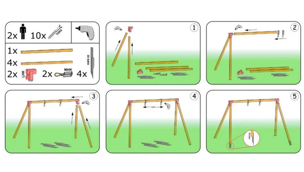 L' altalena viene fornita completa degli accessori di montaggio