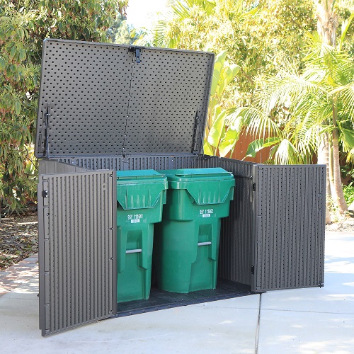 La struttura rigida in polietilene ad alta densità a doppia parete (HDPE) e acciaio verniciato a polveri rende il baule robusto e durevole, resistente alle intemperie protegge qualsiasi oggetto contenuto. Sistema di apertura e chiusura con pistoni pneumatici che rende più facile l’accesso alle cose. La struttura può essere utilizzata come porta biciclette o porta bidoni dei rifiuti. Colore grigio con venature del legno, finitura spazzolata effetto ruvido. Chiudibile con lucchetto.