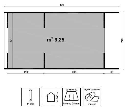 Camping POD di legno in Abete grezzo Superficie Pavimento interna: mq 9,25 Altezza Massima: 260 cm