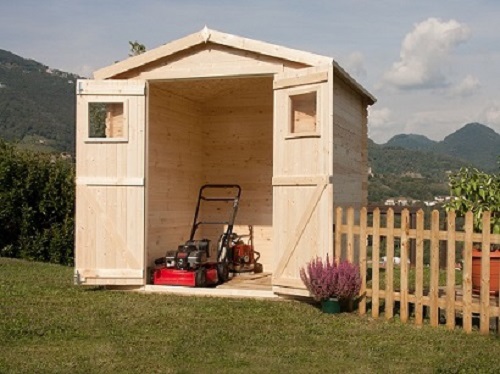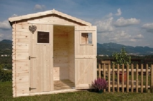 Casetta di legno in Pino grezzo non trattato Superficie Pavimento interna: mq 3,39 Altezza Massima: 200 cm