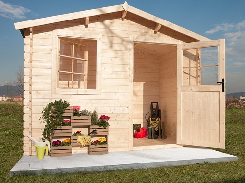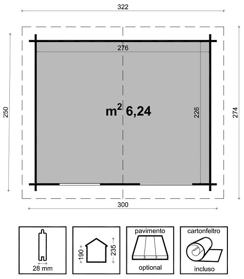 Casetta di legno in Abete grezzo non trattato Superficie Pavimento interna: mq 6,24 Altezza Massima: 235 cm