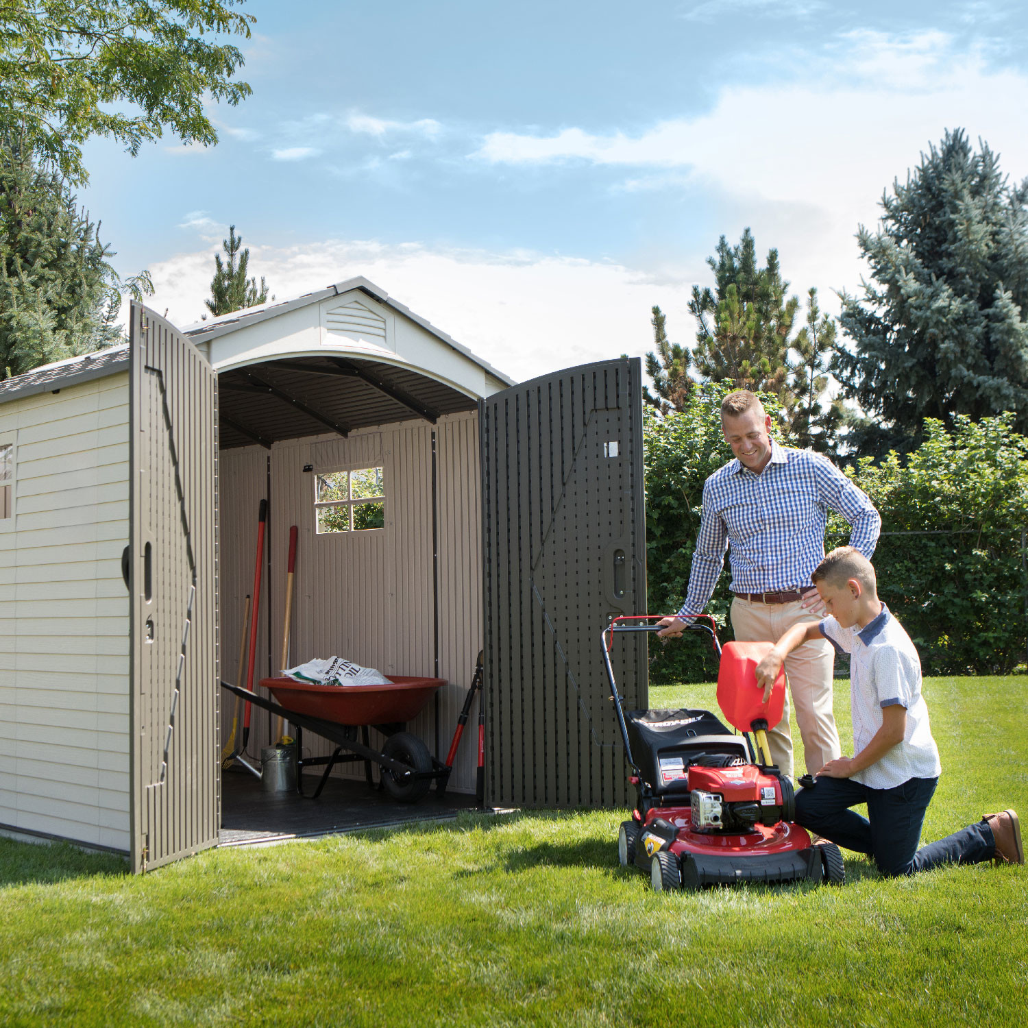 Sono la soluzione ideale per lo stoccaggio degli attrezzi da giardino, biciclette e oggetti che possono finalmente liberare il garage. Realizzate in polietilene a doppia parete, alta densità e protetto con UV è dotata di rinforzi in acciaio. La casetta è dotata di un lucernario a tutta lunghezza che fornisce l’illuminazione interna naturale. Pavimento compreso in polietilene ad alta densità antiscivolo (HDPE). La pendenza del tetto consente un rapido drenaggio della pioggia e della neve, oltre ad una maggiore capacità di carico. Porta doppia con chiavistello. Garanzia 10 anni.