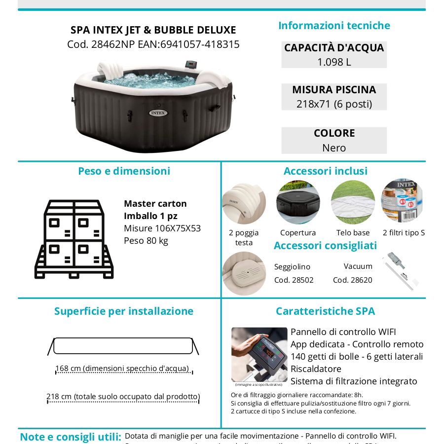 Altra caratteristica importante è la silenziosità del sistema idromassaggio, molto importante per una zona relax. Come indicato nelle caratteristiche tecniche il sistema anti calcare brevettato INTEX garantisce una lunga durata nel tempo.