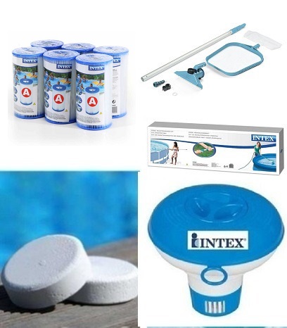 TUTTO QUELLO CHE TI SERVE per la pulizia e manutenzione della tua piscina Metal o Easy Frame Intex, naturalmente utilizzabile anche su altre marche di piscine