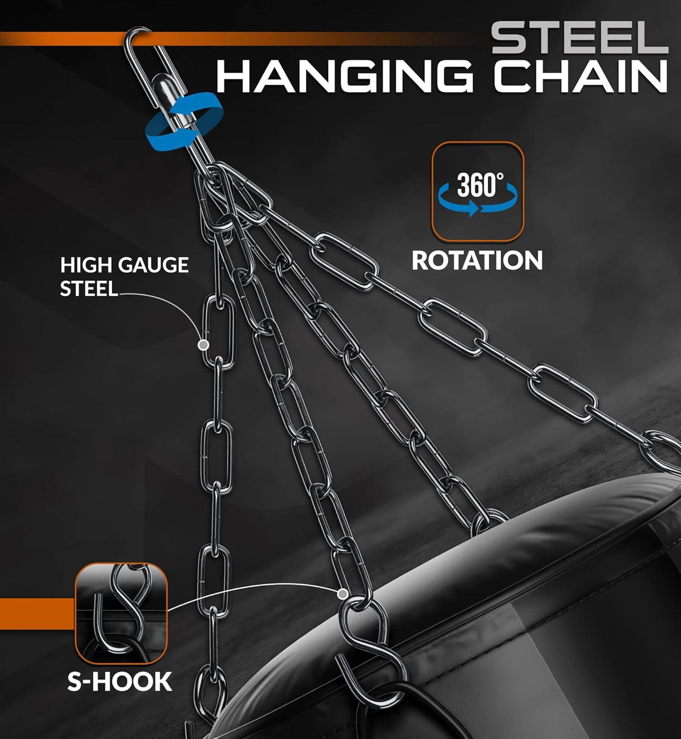 Iniziate a boxare con il nostro sacco da kickboxing realizzato e sospeso in modo unico, che pende con una girella integrata a 360 gradi dalla catena con gancio a S