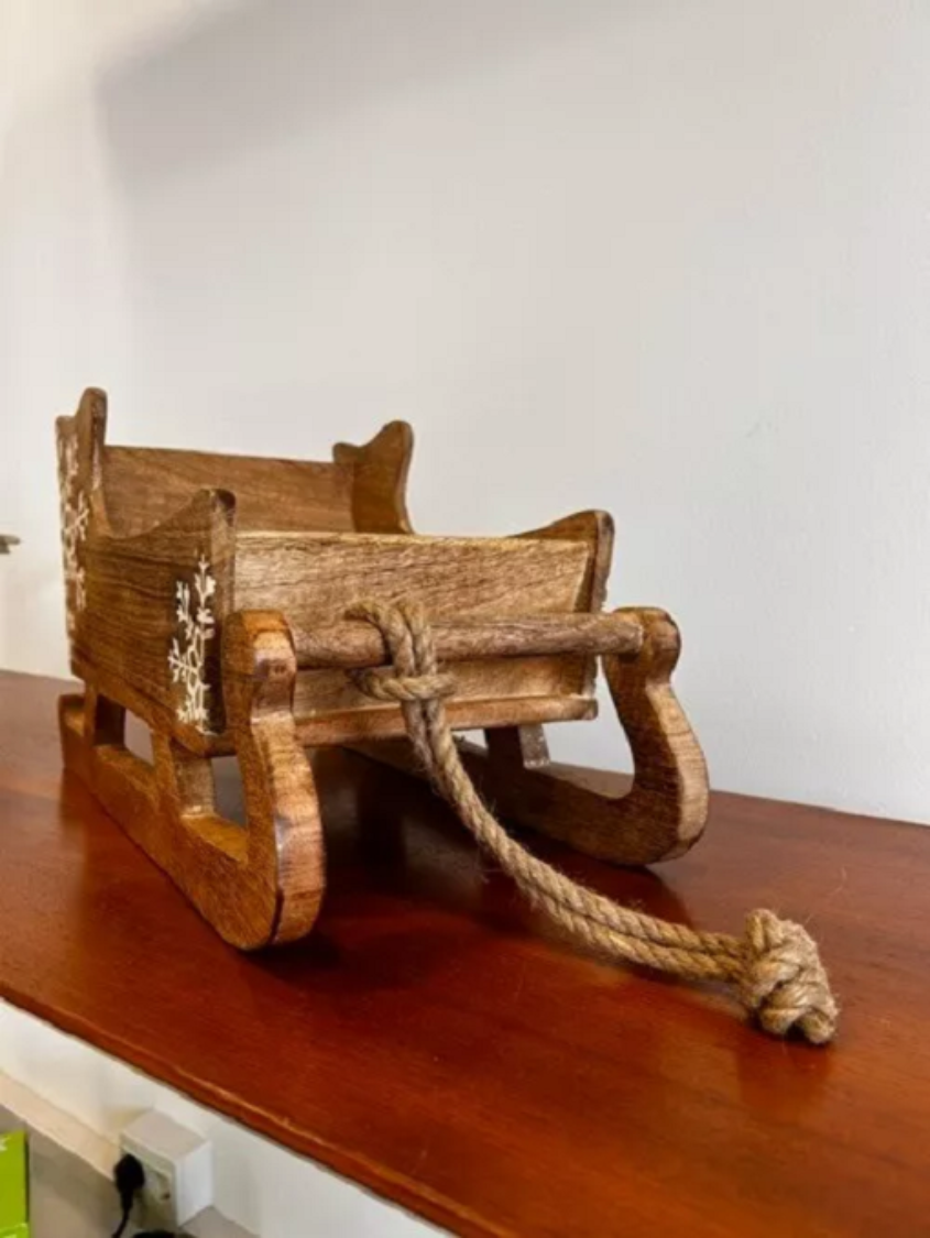 SLITTA NATALIZIA IN LEGNO MASSELLO DI MANGO
