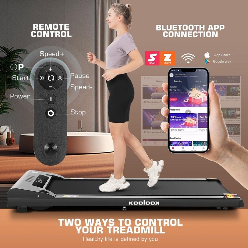Pratico comando con tre funzioni: START-STOP,PAUSA regolazione della velocità da 1-6 KM/H e funzione standby dopo 10 minuti che il tapis resta senza alcuna operazione, la macchina entra in modalità risparmio energetico. Con LCD Bluetooth.