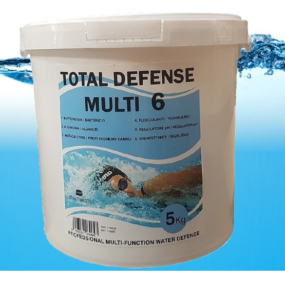 Le pastiglie grandi da 200 g del prodotto TOTAL DEFENSE sono progettate per garantire lenta solubilità: si scioglieranno lentamente garantendo il corretto apporto di cloro, flocculante, antialghe, chiarificante e regolatore di ph, sempre in maniera bilanciata ed atossica.